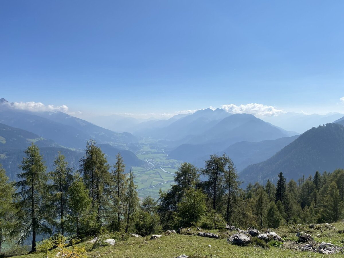 mit Blick über das Drautal, die Kreuzeckgruppe bis hin zum Karnischen Bergmassiv.